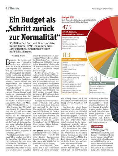 Das Budget 2022, das die Koalition vorlegt, sagt im Wesentlichen: „Alles wird wie früher.“ Wenig, angesichts der Möglichkeiten, die sie hätte – und der Herausforderungen vor uns.