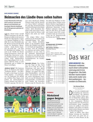In der Rheinhalle trifft der EHC Lustenau auf den HC Meran und ebenfalls am heutigen Abend empfängt der EC Bregenzerwald den EC Kitzbühel.
