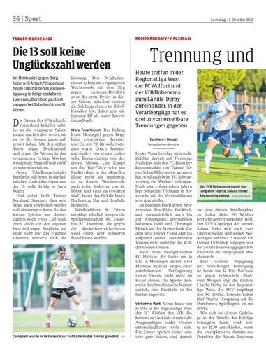 Heute treffen in der Regionalliga West der FC Wolfurt und der VfB Hohenems zum Ländle-Derby aufeinander. In der Vorarlbergliga hat es drei unvorhersehbare Trennungen gegeben.
