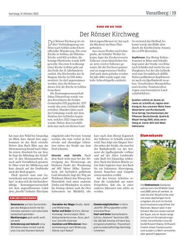 Wanderführer Hertha Glück und Gerhard Vylet wandern auf den Spuren ihres ersten Wandertipps vor elf Jahren, von Schlins nach Röns, Düns und über Schnifis zurück.