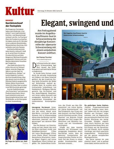 Am Freitagabend wurde im Angelika-Kauffmann-Saal in Schwarzenberg die diesjährige Konzertreihe der :alpenarte Schwarzenberg mit einem umjubelten Konzert eröffnet.