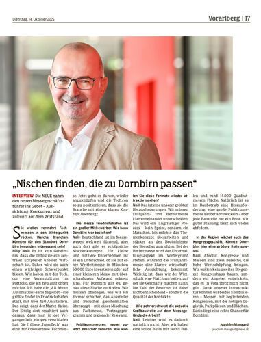 Interview. Die NEUE nahm den neuen Messegeschäftsführer ins Gebet – Ausrichtung, Konkurrenz und Zukunft auf dem Prüfstand.