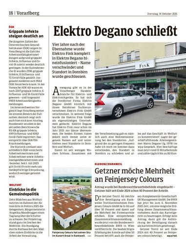 Vier Jahre nach der Übernahme wurde Elektro Fink komplett in Elektro Degano hineinfusioniert – Name verschwindet und Standort in Dornbirn wurde geschlossen.