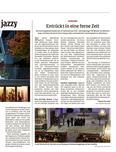 Am Sonntagabend fanden die 34. Hohenemser Chor- und Orgeltage mit Musik von Heinrich Isaac und Hans Buchner ihren klangvollen und meditativ-kontemplativen Abschluss.