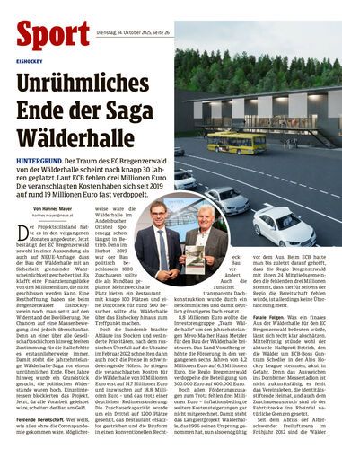 Hintergrund. Der Traum des EC Bregenzerwald von der Wälderhalle scheint nach knapp 30 Jahren geplatzt. Laut ECB fehlen drei Millionen Euro. Die veranschlagten Kosten haben sich seit 2019 auf rund 19 Millionen Euro fast verdoppelt.