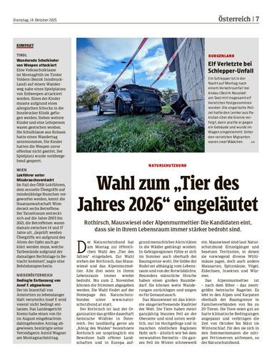 Wahl zum „Tier des Jahres 2026“ eingeläutet