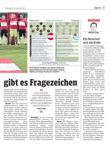 Österreich empfängt heute im ersten Spiel unter Neo-Teamchef Franco Foda in Wien Uruguay. Das große Tüfteln, wer in der Startelf steht, dürfte sich wohl nur auf die Offensive beschränken.