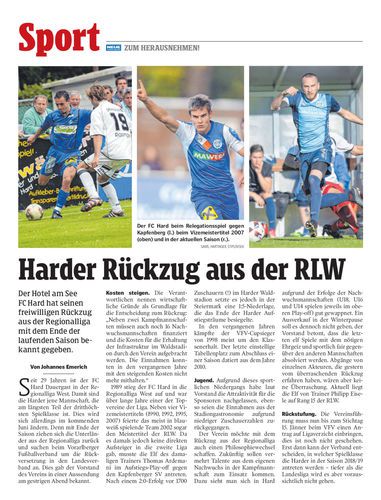 Der Hotel am See FC Hard hat seinen freiwilligen Rückzug aus der Regionalliga mit dem Ende der laufenden Saison bekannt gegeben.