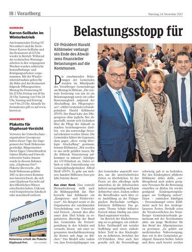 GV-Präsident Harald Köhlmeier verlangt ein Ende des Abwälzens finanzieller Belastungen auf die Kommunen.