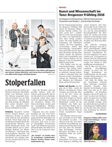 Der Bregenzer Frühling bringt 2018 fünf internationale Tanzstücke nach Bregenz – und ein Stück für Kinder.