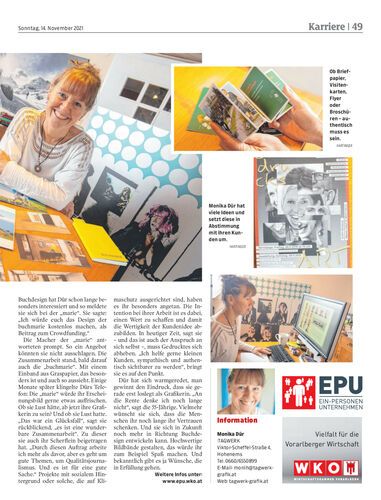 Die Wahl-Hohenemserin Monika Dür verhilft als Grafikerin gerne kleinen Firmen und nachhaltigen Playern zu mehr Aufmerksamkeit. Dabei hat sie den Anspruch, dass der Kunde sich in ihren Produkten wiedererkennt.
