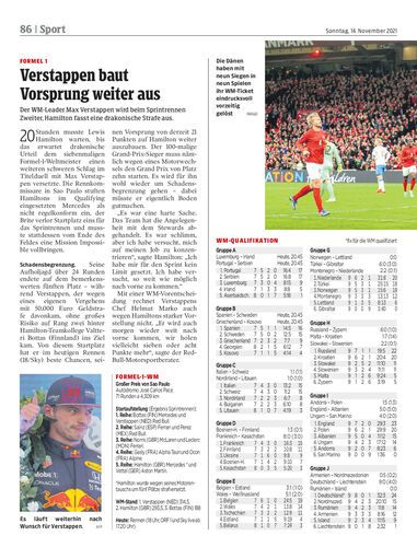 Der WM-Leader Max Verstappen wird beim Sprintrennen Zweiter, Hamilton fasst eine drakonische Strafe aus.