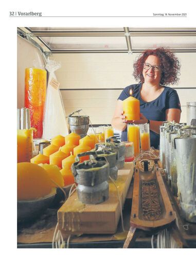 Die Wachszieherin und gebürtige Montafonerin Andrea Hagspiel-Rebholz (49) gießt in ihrer Werkstatt in Sulzberg Kerzen.