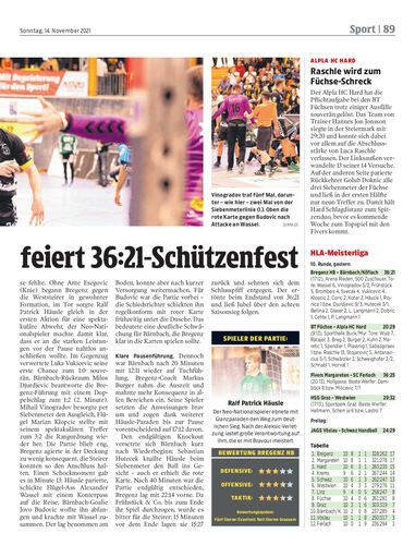 Nur bis zur 20. Minute ist Bärnbach/Köflach ein gleichwertiger Gegner. Nach 17:12 zur Pause siegt Bregenz klar 36:21 und bleibt Tabellenführer der Handball-Liga Austria.