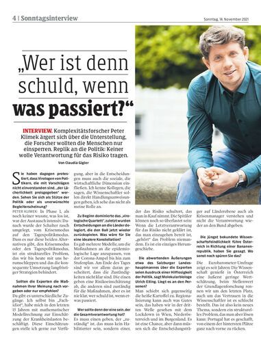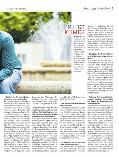 Interview. Komplexitätsforscher Peter Klimek ärgert sich über die Unterstellung, die Forscher wollten die Menschen nur einsperren. Replik an die Politik: Keiner wolle Verantwortung für das Risiko tragen. Von Claudia Gigler