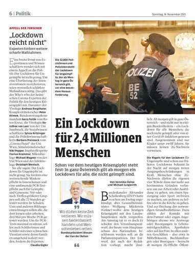 Schon vor dem heutigen Krisengipfel steht fest: In ganz Österreich gilt ab morgen ein Lockdown für alle, die nicht geimpft sind.