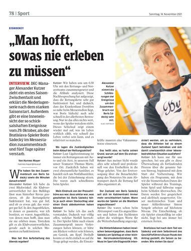 Interview. DEC-Manager Alexander Kutzer zieht ein erstes Saison-Zwischenfazit und erklärt die Niederlagenserie nach dem starken Saisonstart. Außerdem gibt er eine Inneneinsicht der so schicksalshaften Ereignisse vom 29. Oktober, als der Bratislava-Spieler Boris Sádecký im Messestadion zusammenbrach und fünf Tage später verstarb.