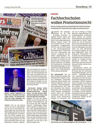 Bei der Campuseröffnung bekräftigte die Fachhochschule Vorarlberg ihre Forderung nach eigenem Doktoratsrecht.