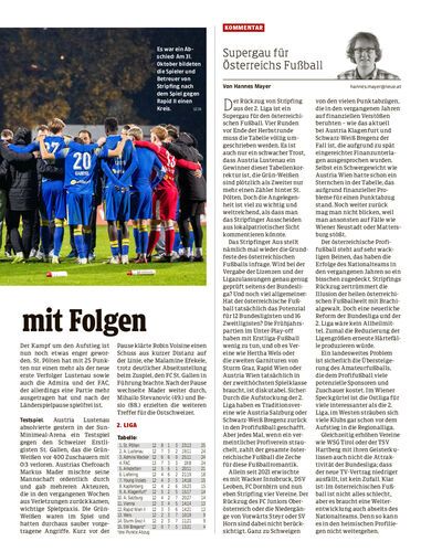 Der Stripfinger Rückzug und seine Folgen. Die Tabelle der 2. Liga muss neu geschrieben werden. Austria Lustenau testeste gestern gegen St. Gallen.