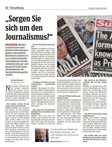 Interview. Herbert Lackner kann man getrost einen der ganz großen Journalisten Österreichs nennen. Er war stellvertretender Chefredakteur bei der „Arbeiter Zeitung“ und danach 23 Jahre lang Chefredakteur des Nachrichtenmagazins „Profil“.