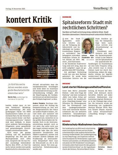 Darüber sei Stadtvertretung einig, erklärte Alton. Stadt Dornbirn dementiert. Patientenanwalt unterstützt Reform.