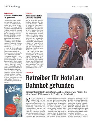 Der Vorarlberger Gastronomiefachmann René Gmeiner wird Pächter des Night Inn mit 125 Zimmern in der Feldkircher BahnhofCity.
