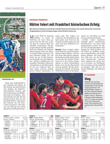 Mit einem 2:1-Sieg bei Lazio Rom schließt Eintracht Frankfurt als erster deutscher Verein die Gruppenphase in der Europa League ohne Punkteverlust ab.