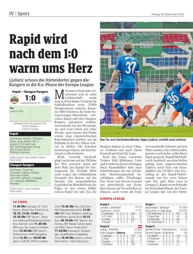 Ljubicic schoss die Hütteldorfer gegen die Rangers in die K.o.-Phase der Europa League.