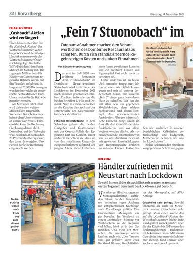 Coronamaßnahmen machen den Verantwortlichen des Dornbirner Restaurants zu schaffen. Durch sich ständig ändernde Regeln steigen Kosten und sinken Einnahmen.