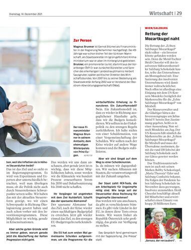 Neo-Finanzminister Magnus Brunner (ÖVP) will „auf Augenhöhe“ an den Klimazielen arbeiten. Von Strafen hält er genauso wenig wie von einer Schuldenunion. Von Georg Renner