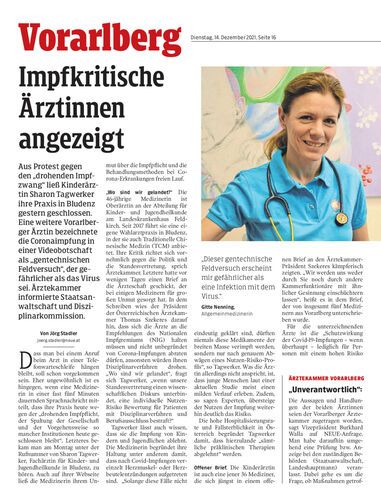 Aus Protest gegen den „drohenden Impfzwang“ ließ Kinderärztin Sharon Tagwerker ihre Praxis in Bludenz gestern geschlossen. Eine weitere Vorarlberger Ärztin bezeichnete die Coronaimpfung in einer Videobotschaft als „gentechnischen Feldversuch“, der gefährlicher als das Virus sei. Ärztekammer informierte Staatsanwaltschaft und Disziplinarkommission.