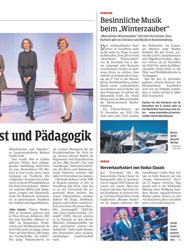„Montafoner Winterzauber“ mit zehn Konzerten. Zum Auftakt gibt es Literatur und Musik in Bartolomäberg.