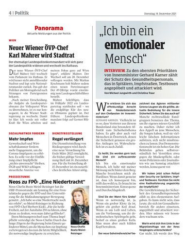 Zu den obersten Prioritäten von Innenminister Gerhard Karner zählt der Schutz des Gesundheitspersonals, das in Spitälern, Impfstraßen, Testboxen angepöbelt und attackiert wird. Von Michael Jungwirth und Christina Traar