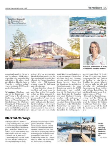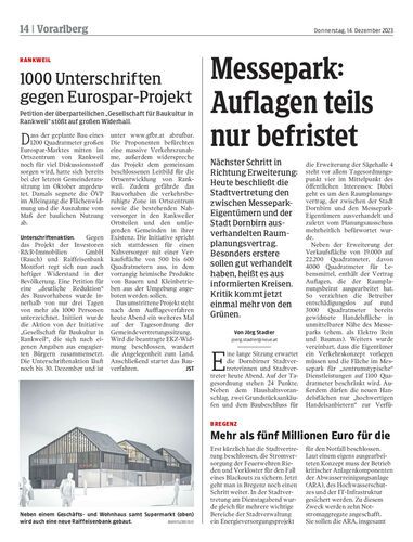 Nächster Schritt in Richtung Erweiterung: Heute beschließt die Stadtvertretung den zwischen Messepark-Eigentümern und der Stadt Dornbirn ausverhandelten Raumplanungsvertrag. Besonders erstere sollen gut verhandelt haben, heißt es aus informierten Kreisen. Kritik kommt jetzt einmal mehr von den Grünen.