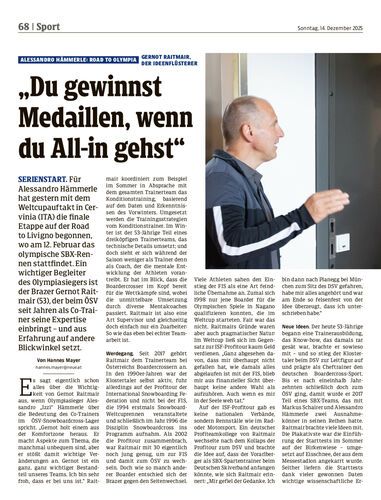Serienstart. Für Alessandro Hämmerle hat gestern mit dem Weltcupauftakt in Cervinia (ITA) die finale Etappe auf der Road to Livigno begonnen, wo am 12. Februar das olympische SBX-Rennen stattfindet. Ein wichtiger Begleiter des Olympiasiegers ist der Brazer Gernot Raitmair (53), der beim ÖSV seit Jahren als Co-Trainer seine Expertise einbringt – und aus Erfahrung auf andere Blickwinkel setzt.