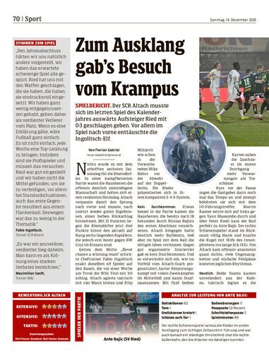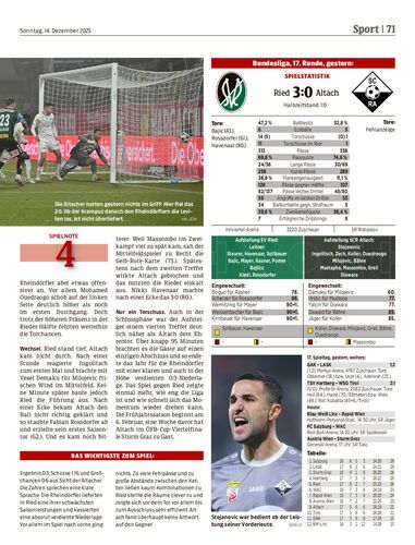 Spielbericht. Der SCR Altach musste sich im letzten Spiel des Kalenderjahres auswärts Aufsteiger Ried mit 0:3 geschlagen geben. Vor allem im Spiel nach vorne enttäuschte die Ingolitsch-Elf.