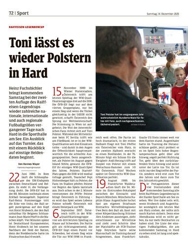 Heinz Fuchsbichler bringt kommenden Samstag bei der zweiten Auflage des Raiffeisen-Legendcups wieder zahlreiche nationale, internationale und auch regionale Fußballgrößen vergangener Tage nach Hard in die Sporthalle am See. Ein Ausblick auf das Turnier, das mit einem Rückblick auf einstige Heldendaten beginnt.