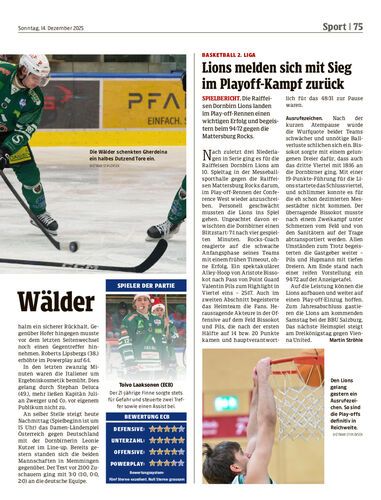 Spielbericht. Die Raiffeisen Dornbirn Lions landen im Play-off-Rennen einen wichtigen Erfolg und begeistern beim 94:72 gegen die Mattersburg Rocks.