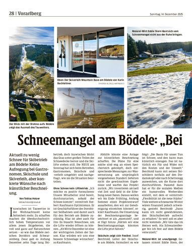 Aktuell zu wenig Schnee für Skibetrieb am Bödele: Keine Aufregung bei Gastronomen, Skischule und Skiverleih, aber konkrete Wünsche nach künstlicher Beschneiung.