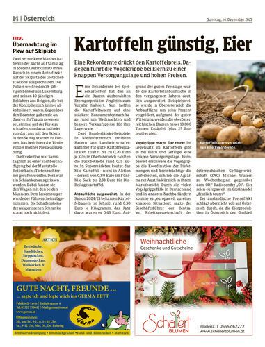 Eine Rekordernte drückt den Kartoffelpreis. Dagegen führt die Vogelgrippe bei Eiern zu einer knappen Versorgungslage und hohen Preisen.