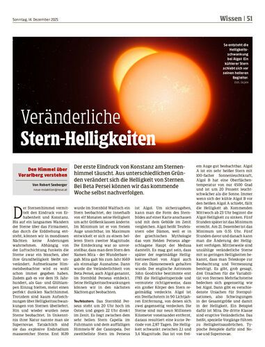 Der erste Eindruck von Konstanz am Sternenhimmel täuscht. Aus unterschiedlichen Gründen verändert sich die Helligkeit von Sternen. Bei Beta Persei können wir das kommende Woche selbst nachverfolgen.