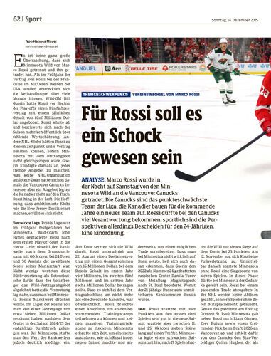 Analyse. Marco Rossi wurde in der Nacht auf Samstag von den Minnesota Wild an die Vancouver Canucks getradet. Die Canucks sind das punkteschwächste Team der Liga, die Kanadier bauen für die kommende Jahre ein neues Team auf. Rossi dürfte bei den Canucks viel Verantwortung bekommen, sportlich sind die Perspektiven allerdings Bescheiden für den 24-Jährigen. Eine Einordnung.