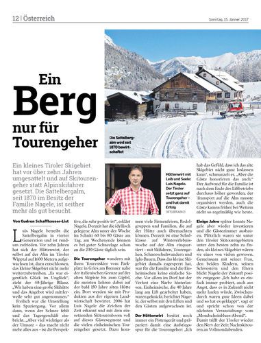 Ein kleines Tiroler Skigebiet hat vor über zehn Jahren umgesattelt und auf Skitourengeher statt Alpinskifahrer gesetzt. Die Sattelbergalm, seit 1870 im Besitz der Familie Nagele, ist seither mehr als gut besucht.