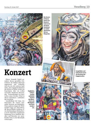 Närrisch, farbenfroh und laut: altbekannte und weit gereiste Guggamusik-en spielten am Dornbirner Marktplatz auf.