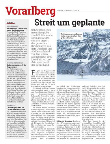 Schnepfau gegen neue Kiesgrube von Rüf. Gemeinde schlägt stattdessen den Import des gesamten Kiesbedarfes aus dem Oberland und Süddeutschland vor. Das wären allein bei Rüf 5000 Lkw-Fahrten pro Jahr quer durch das ganze Land.