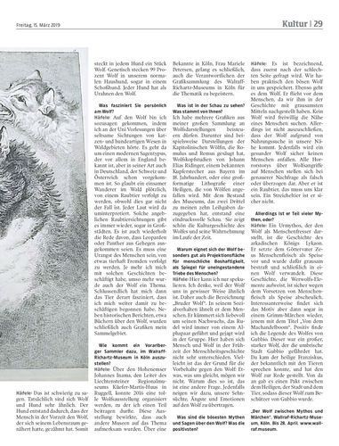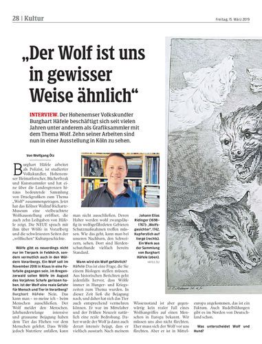 Interview. Der Hohenemser Volkskundler Burghart Häfele beschäftigt sich seit vielen Jahren unter anderem als Grafiksammler mit dem Thema Wolf. Zehn seiner Arbeiten sind nun in einer Ausstellung in Köln zu sehen.