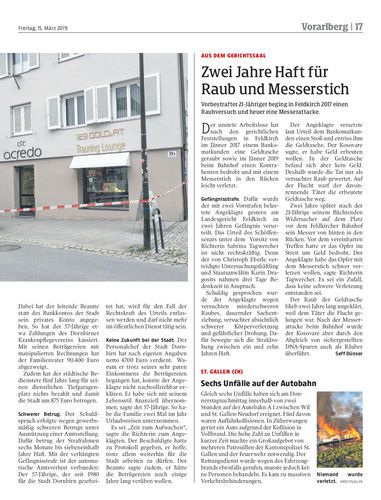 Vorbestrafter 21-Jähriger beging in Feldkirch 2017 einen Raubversuch und heuer eine Messerattacke.
