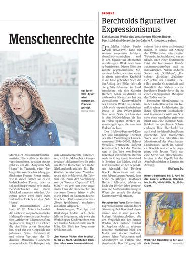 Erstklassige Werke des Vorarlberger Malers Hubert Berchtold sind derzeit in der Galerie Arthouse zu sehen.