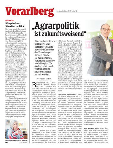 Bio-Landwirt Simon Vetter (35) vom Vetterhof in Lustenau wird Kandidat der Vorarlberger Grünen für die EU-Wahl im Mai. Vorarlberg soll eine Modellregion für ökologische Landwirtschaft und saubere Lebensmittel werden.