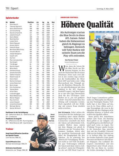 Als Aufsteiger starten die Blue Devils in diese AFL-Saison. Dabei haben die Hohenemser gleich 16 Abgänge zu beklagen. Dennoch will Tyler Harlow mit seinem Team um die Play-offs mitreden.